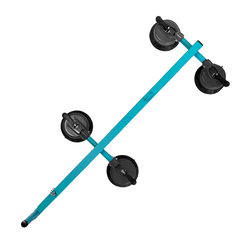 Het glas tilframe met 4 zuignappen is een essentieel hulpmiddel voor de FitGlass ruitenlift en maakt het veilig, gecontroleerd en ergonomisch tillen van autoruiten en dakramen mogelijk. Het frame wordt stevig op het glas geplaatst en vastgezet met vier hoogwaardige rubberen zuignappen, elk voorzien van een betrouwbare snelvergrendeling voor maximale grip en veiligheid.