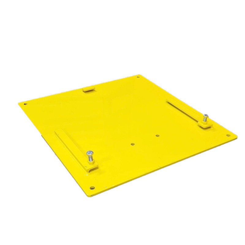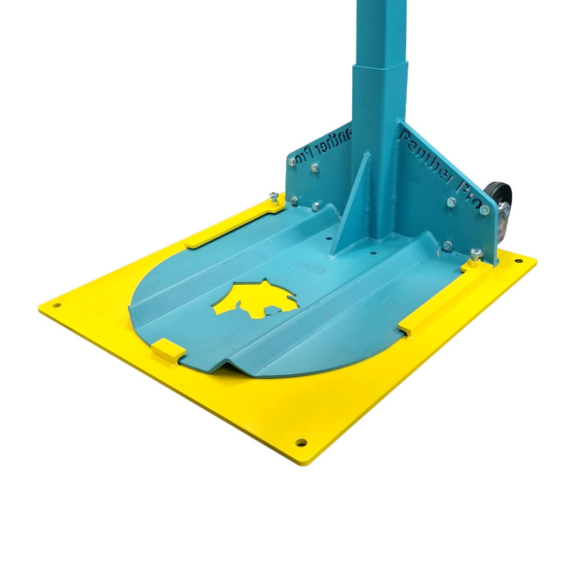 Met deze degelijk uitgevoerde stalen voetplaat krijgt een normaal verplaatsbare Fitglass autoruitenlift een vaste, stabiele positie in de werkplaats. Zo hoeft de lift niet langer met een autowiel op zijn voet geplaatst te worden om stevig te staan.