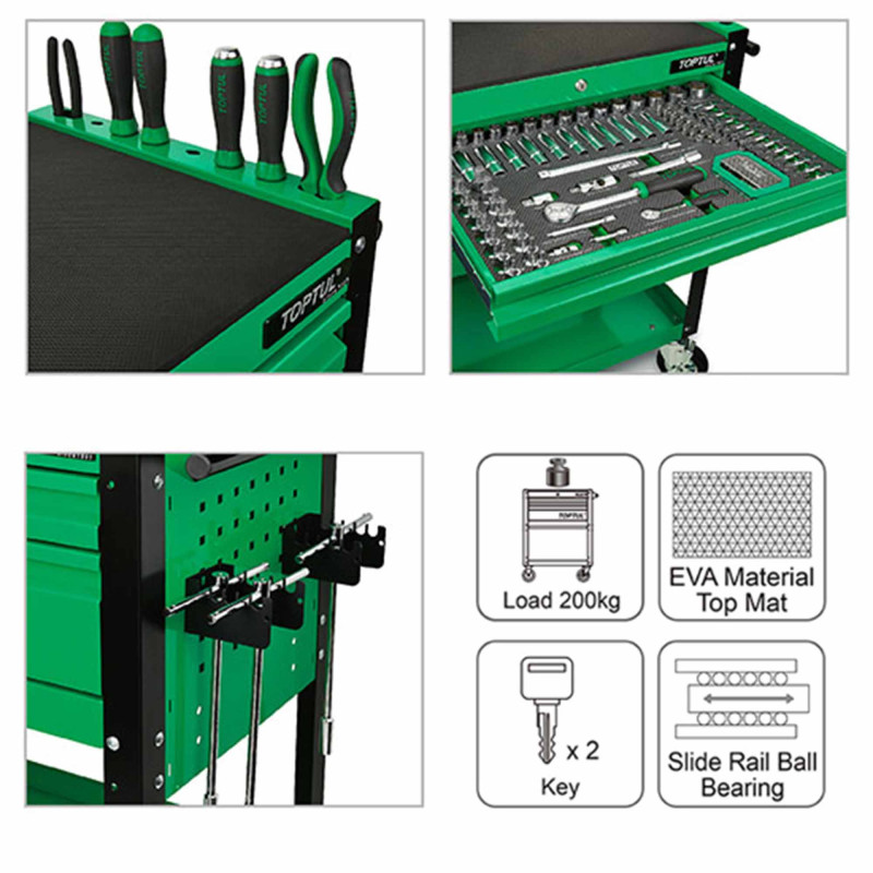 Toptul Servicewagen met 2 afsluitbare laden, groen