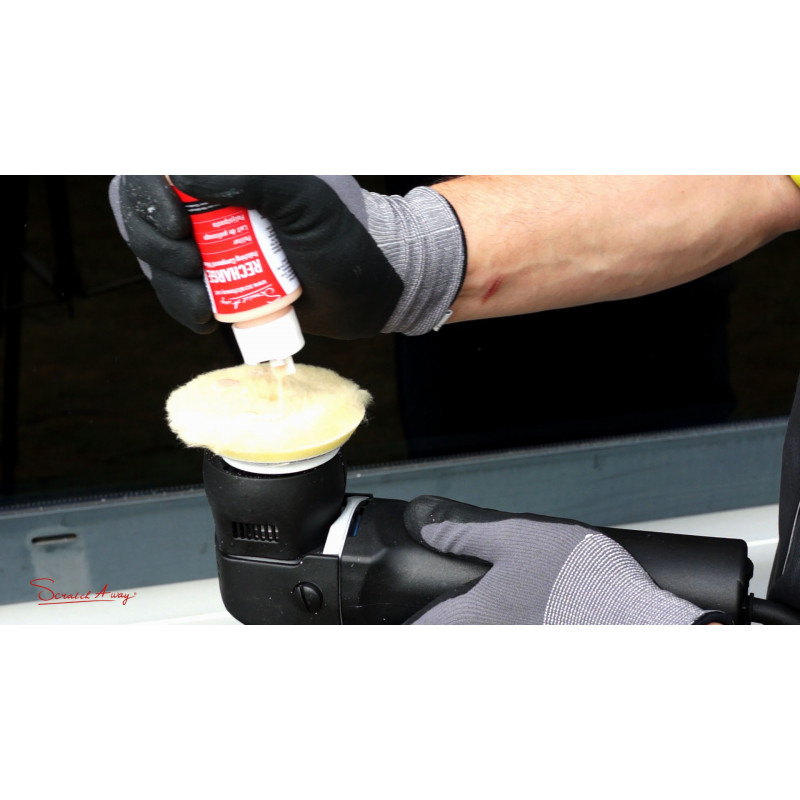 Scratch Away Recharge polijstmiddel is de laatste stap om bijvoorbeeld een oppervlak voorzien van poedercoat of kunststof te herstellen na jarenlange degradatie door Uv-licht, vuil water, lucht en zuur. De microschurende deeltjes verwijderen de laatste degradatie en onvolkomenheden van het oppervlak. In combinatie met de Scratch Away polijstschijf geel op de SAW195 machine eindigt uw renovatie in één keer moeiteloos.