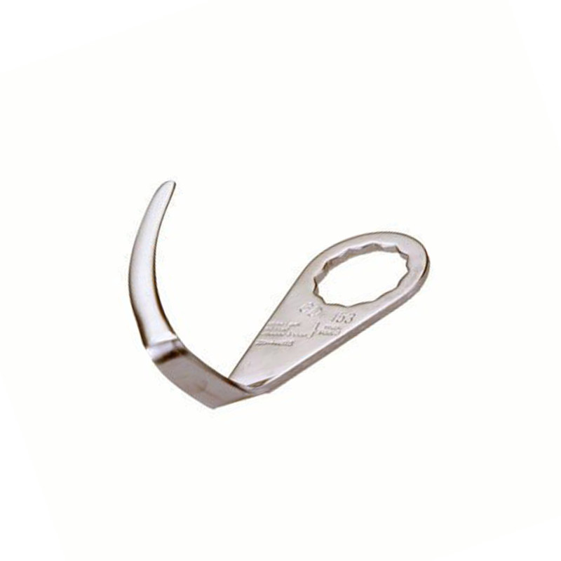 Fein mes die in combinatie met de oscillerende bewegingen van een Fein machine, de polyurethaanlijm bij verlijmde ruiten doorsnijdt.