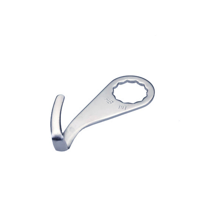 Fein mes die in combinatie met de oscillerende bewegingen van een Fein machine, de polyurethaanlijm bij verlijmde ruiten doorsnijdt.