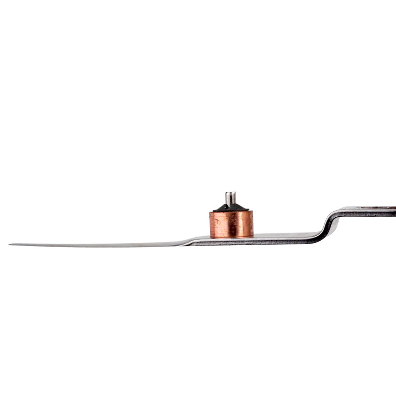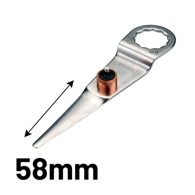 Fein mes die in combinatie met de oscillerende bewegingen van een Fein machine, de polyurethaanlijm bij verlijmde ruiten doorsnijdt.