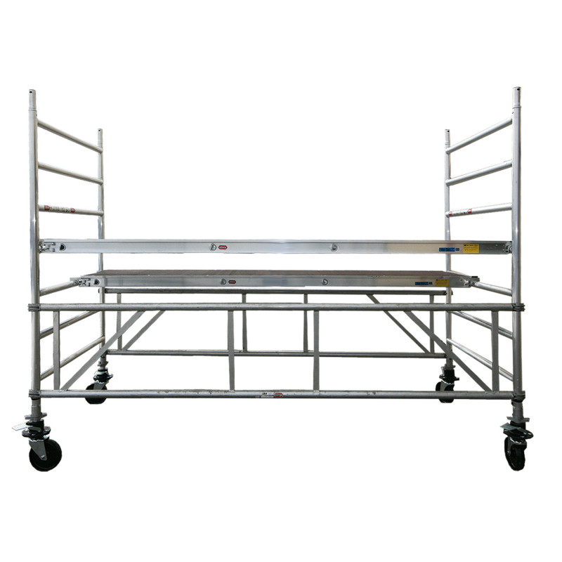 De steiger biedt een solide en veilige werkplek door het gebruik van diagonale steunen, waardoor de constructie nauwelijks beweegt, zelfs bij intensief gebruik. Wat deze steiger nog gebruiksvriendelijker maakt, zijn de twee onafhankelijk te plaatsen plateau’s. Deze kunnen op de gewenste hoogte worden gemonteerd, zodat elke monteur comfortabel en veilig kan werken, ongeacht de positie van de ruit. Ook het beklimmen en afdalen wordt hierdoor eenvoudiger en veiliger. Dankzij de zwenkwielen met rem (Ø200mm) is de steiger nog gemakkelijker te verplaatsen, maar staat hij altijd stevig vergrendeld tijdens werkzaamheden.